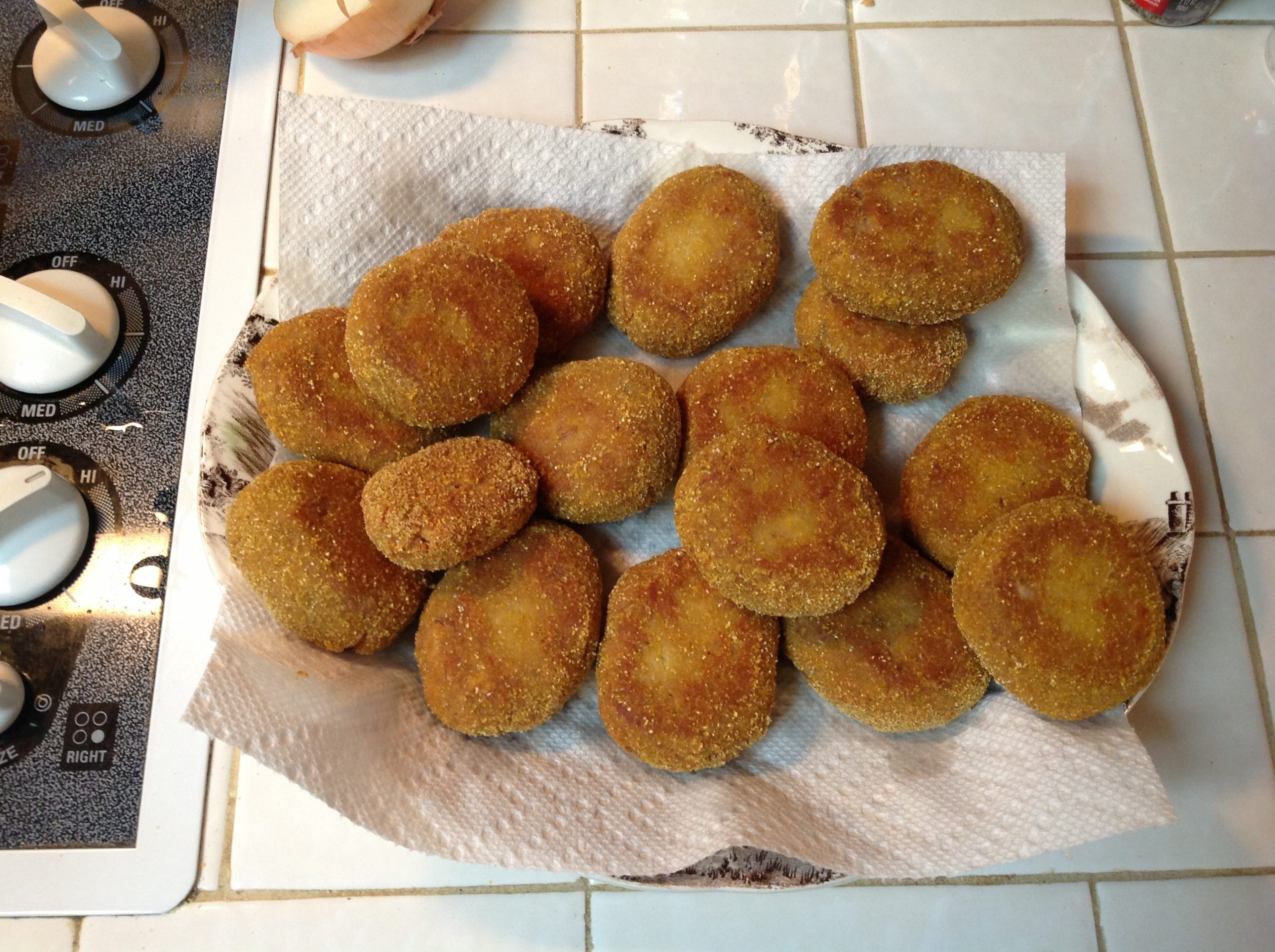 Note: Press down if there visible liquid, add more flour or corn meal 1 teaspoon at a time until desired effect. - Dredge in Corn Meal