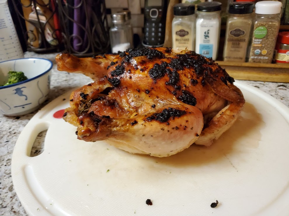 - 4 pound (2kg) whole chicken, at room temperature giblets and neck removed from cavity*