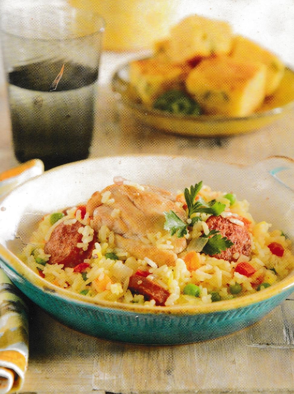 - 11 ounces cooked Linguica or Kielbasa Sausage, sliced into 1/2″ rounds
