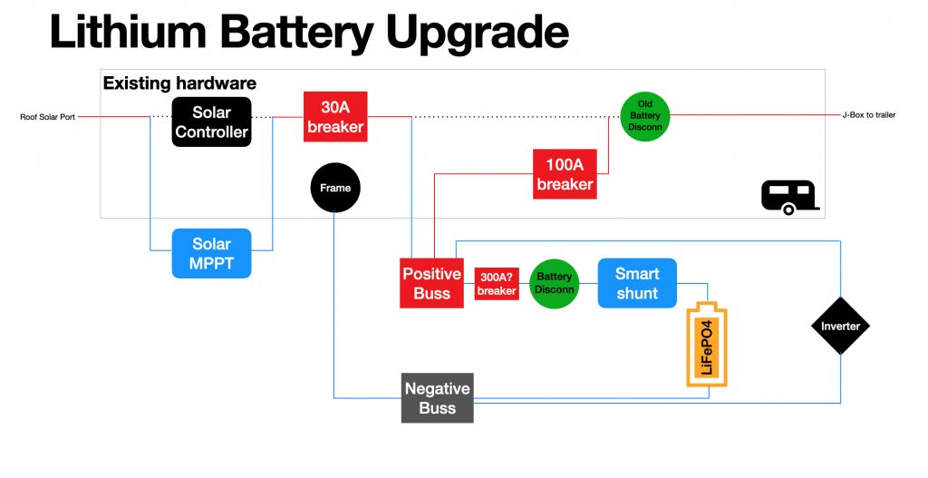 To simply state the retrofit, Dad is replacing the solar PWM controller with a solar MPPT controller and the Lead Acid batteries with a Lithium battery. However, due to the price of the battery, Dad wants to build it in unused space in the trailer to keep it out of sight. The two new monitoring devices also needs to be close enough for the Ve.direct cable to reach.