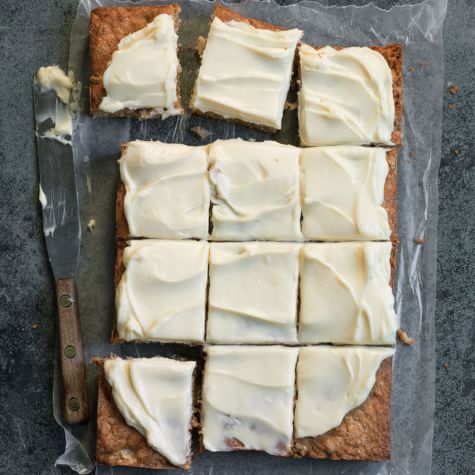 - Spread over cake and sprinkle remaining walnuts.
