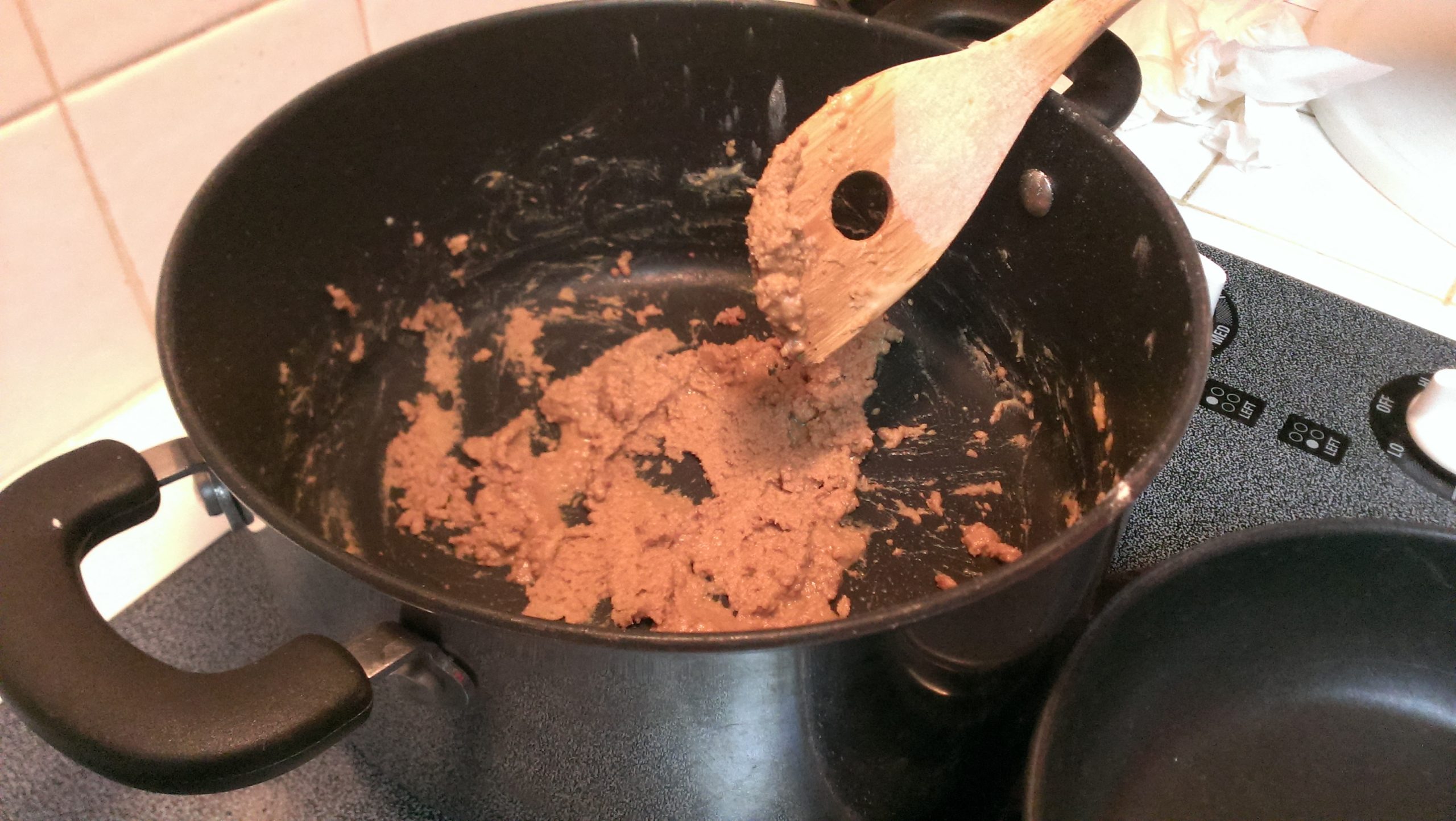 Note: This removes the raw flour taste. Remove from heat immediately. - With a Whisk, pour in chicken stock.