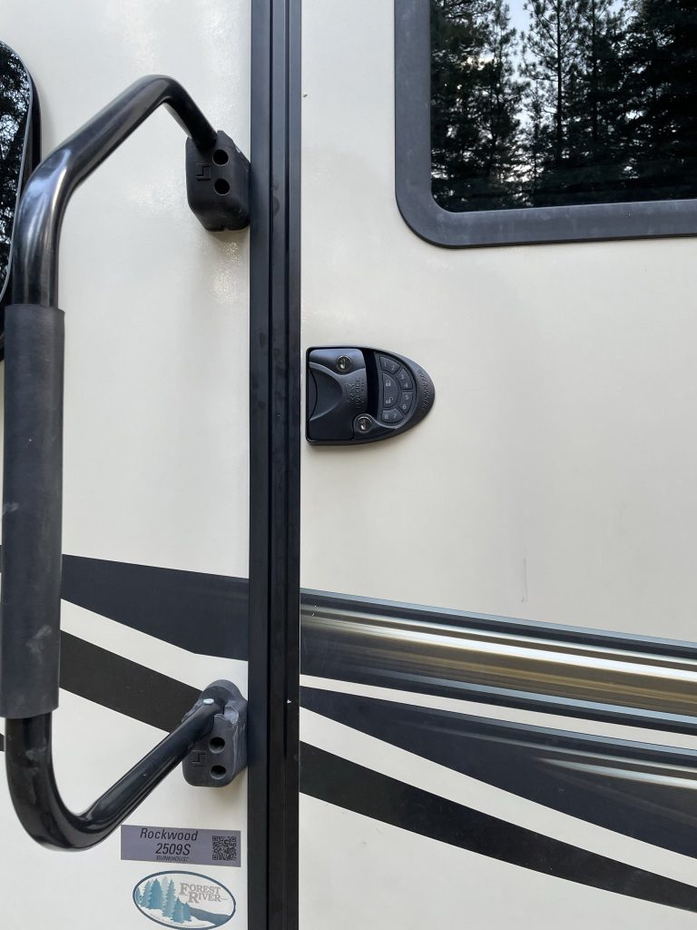 Some of Dad’s specifications were it must be towable by Bandit (920lbs max tongue weight) and it should be less than 27 feet long to fit the average camp length. During Mom and Dad’s 13th anniversary, they went to a couple RV dealers and the 2022 Rockwood mini lite 2509S was, to quote Mom, the unicorn trailer.